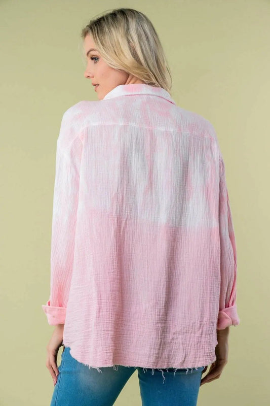 Trendsi White Birch Tie Dye Women's Casual Long Sleeve Shirt - Soft & Stylish