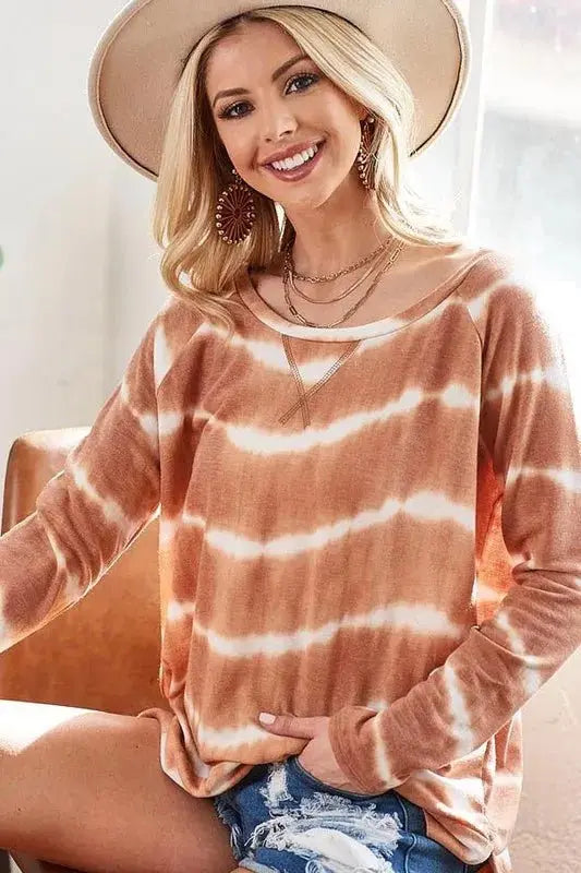 Trendsi Tie Dye Terry Tee Women's Casual Top w/Slits Comfy T-Shirt