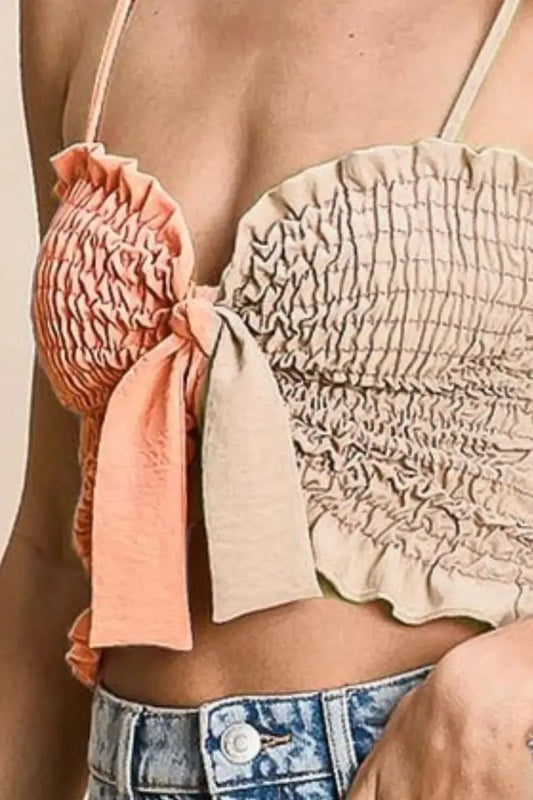 Trendsi Woven Color Block Top Women's Casual Smocked Bra Top with Ribbon Detail