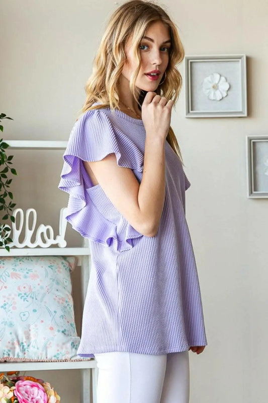 Trendsi just arrived - Heimish Full Size Ruffled Sleeve Ribbed Top