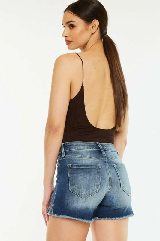 Trendsi Kancan High Rise Denim Women's Frayed Hem Shorts - Premium Fit