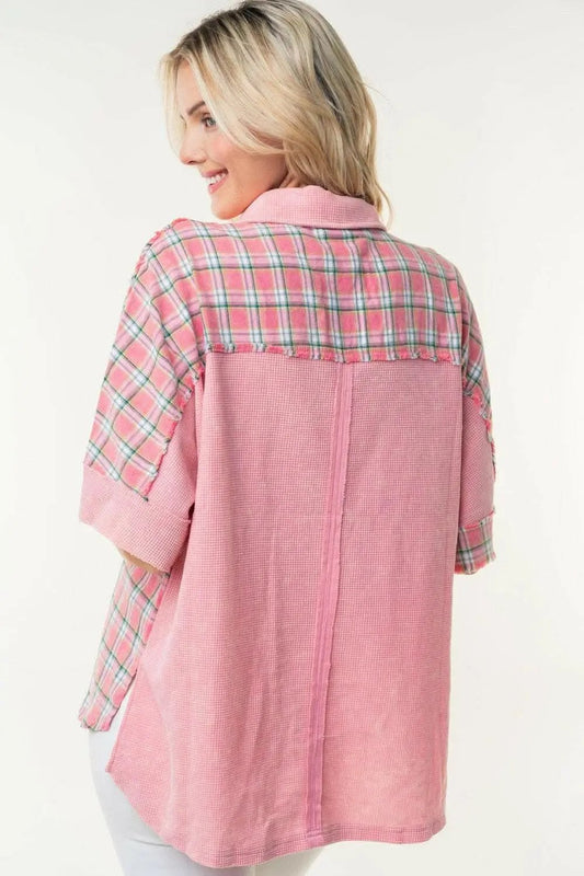 Trendsi just arrived - White Birch Plaid Color Block Half Button Top