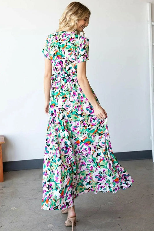 Trendsi First Love Slit Printed Surplice Tie Waist Short S