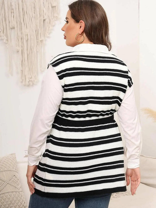 Sweater Vest - Striped Plus Size Knit - Sleeveless