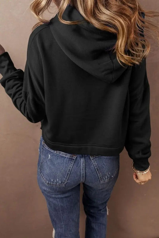 Love Salve Black Solid Kangaroo Pocket Half Zipper Oversized