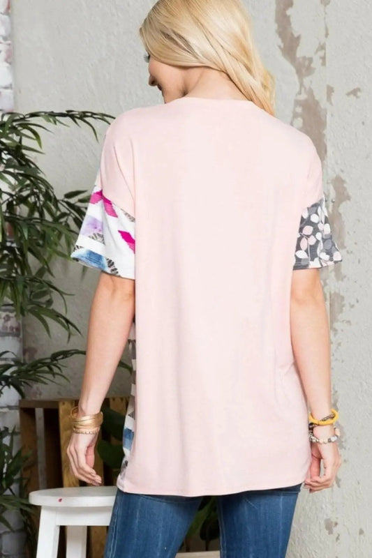 Love Salve Celeste Peach Tee Women's Color Block Top - Soft & Stylish