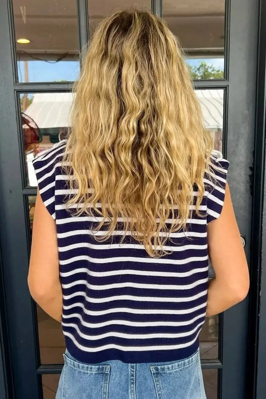 Love Salve Blue Stripe Knit Women's Sweater Vest Daily Wear Southern Belle Style Sleeveless Top