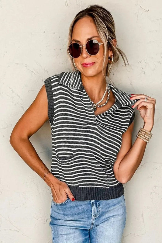Love Salve Gray Stripe Women's Layering Vest Casual Sweater Vest with Pockets