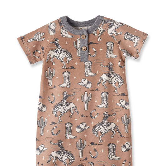 Wild Wrangler/Brown Western Bamboo Henley Romper for Babies
