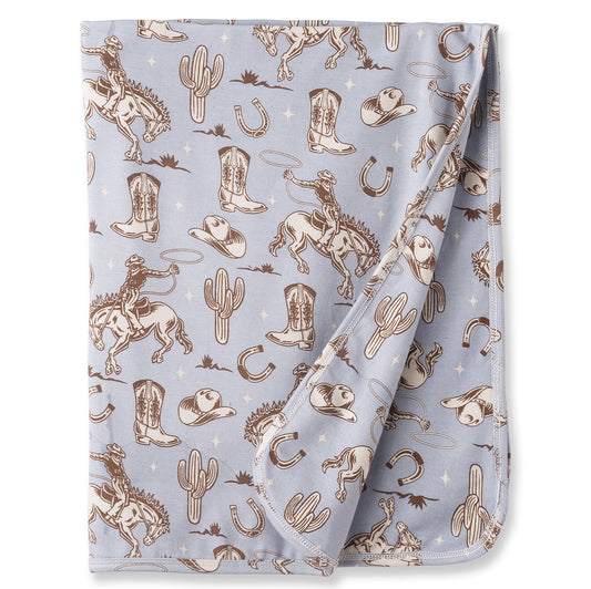Wild Wrangler/Blue Western Baby Boy Bamboo Stroller Blanket