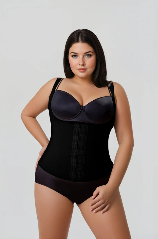Open Bust Mid-thigh Body Shapewear w/ Flat Front