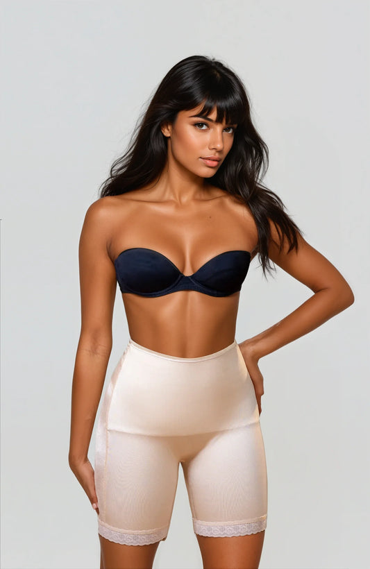 Underbust High Waist Lace Trim Shapewear Slip Shorts