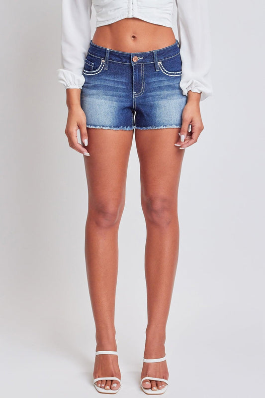 Women's Luxe Raw Edge Cuff Mid Rise Denim Short