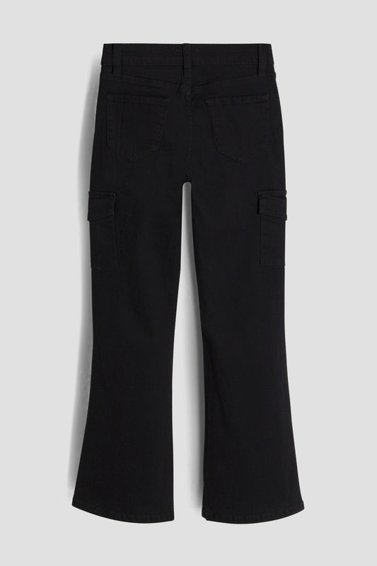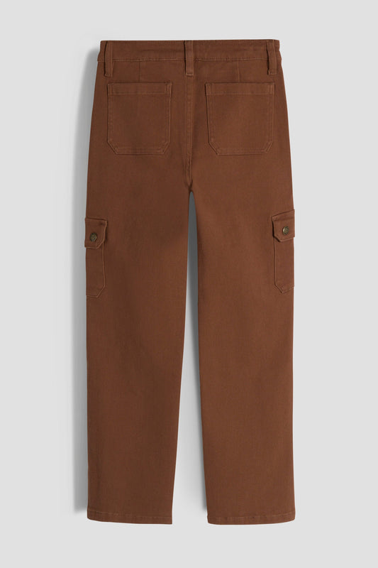 Women's High Rise Elastic Waist Cargo Straight Jeans