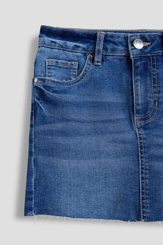 Girls Patch Pocket Oversized Denim Jacket With Fray Hem