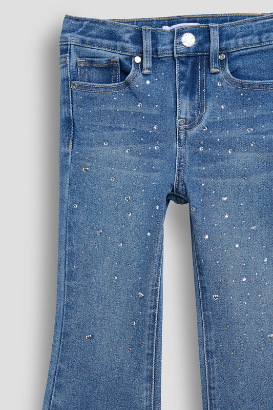 Girls Hot Fix Stud Cuffed Wide Jeans