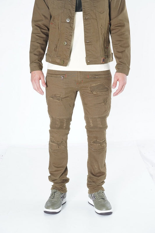 M1926 - Makobi Core Denim Biker Jeans - Olive