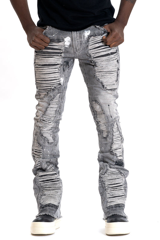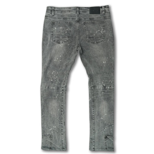 F1748A Shredded Biker Denim Jeans w/ Bottom Leg Zipper | 32-inch Inseam - Gray