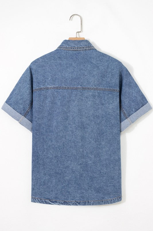 Denim Flap Pocket Cuffed Short Sleeve Shirt
