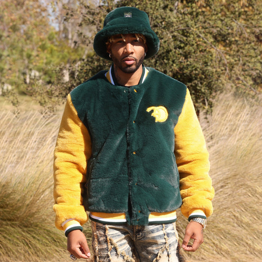 F1010 Marc Rabbit Fur Varsity Jacket - Green