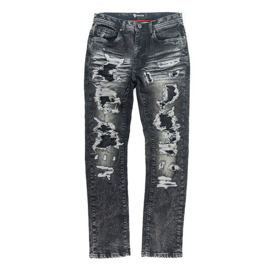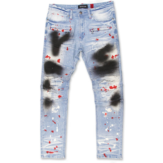 M1786 Makobi Prado Biker Jeans with Rip & Repair - Vintage Wash (NEW)