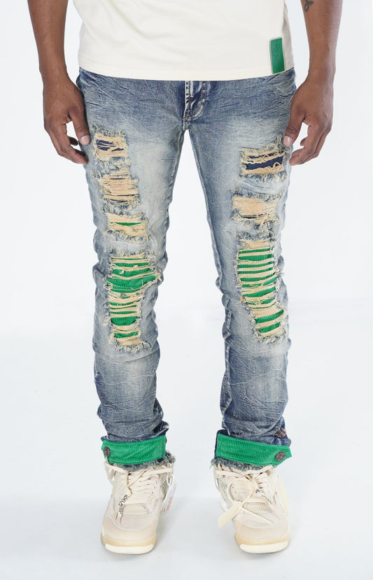 F1745 Shredded jeans w/ Cord Layer - Dirt