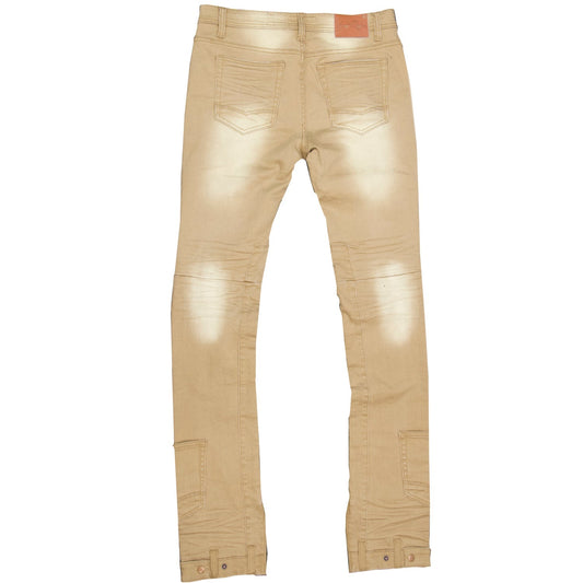 F1748 Shredded Biker Denim Jeans w/ Bottom Leg Zipper | 40-inch Inseam - Khaki