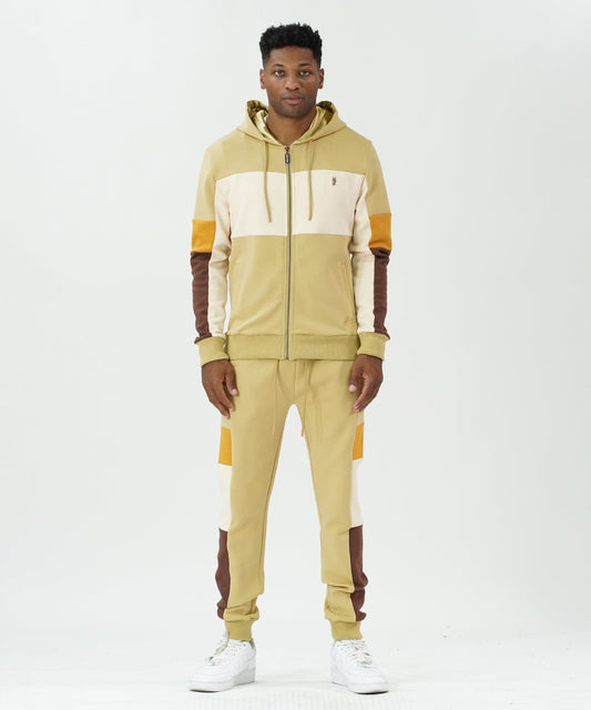 M2323 Paolo Fleece Jacquard Hoodie Track Set - Khaki