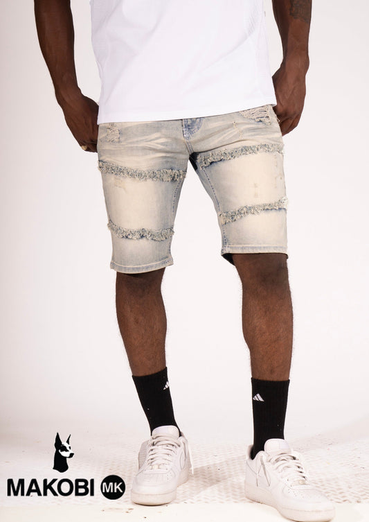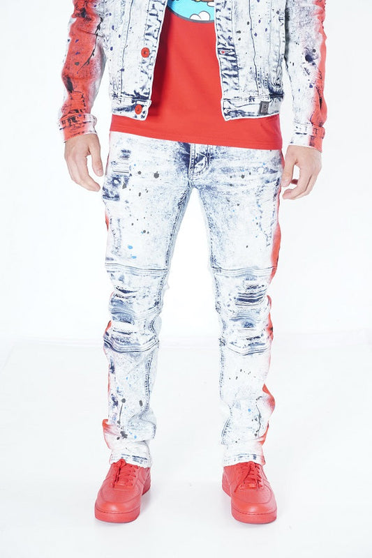 M1938 Paint Stroke Shredded Denim Jeans - Light Wash