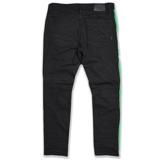M1950 Makobi Biker Jeans w/ Nylon Stripes - Black