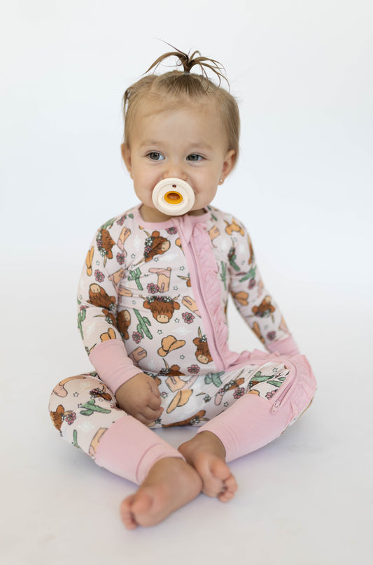 Pink Highland Cow bubble romper