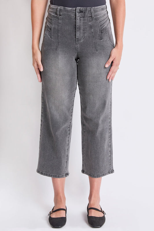 Women's High Rise Crop Detailed Wide Leg Jeans