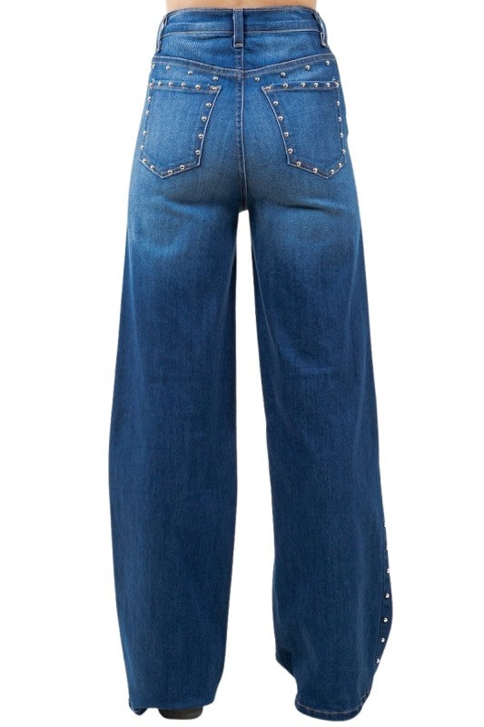 High Waist Rhinestone Cross Wide-Leg Jeans