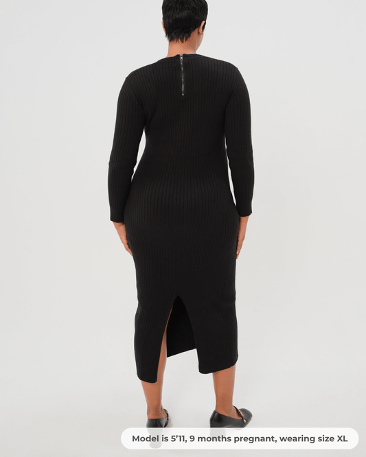 Full Body Ribbed Maternity & Nursing Midi Sweater Dress