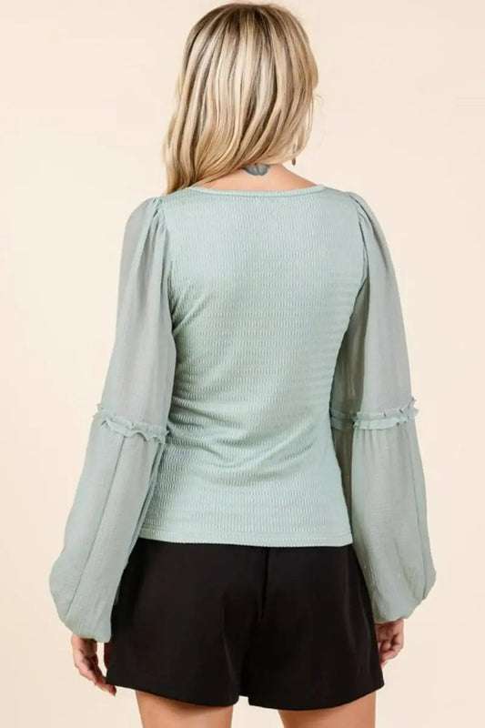 Women's Long Sleeve Top - Knit Chiffon - Textured Mixed Media