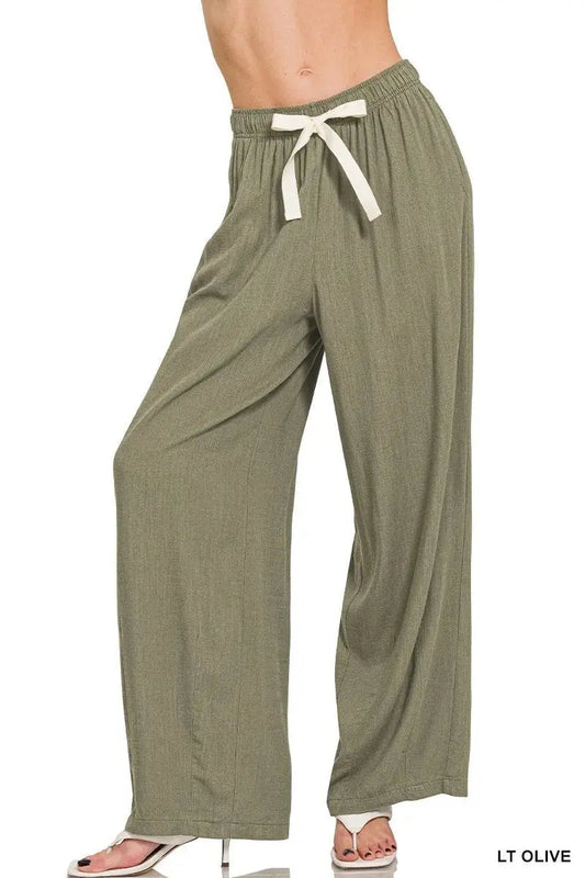 Linen Drawstring Pants - Comfy Lightweight - Women's Casual