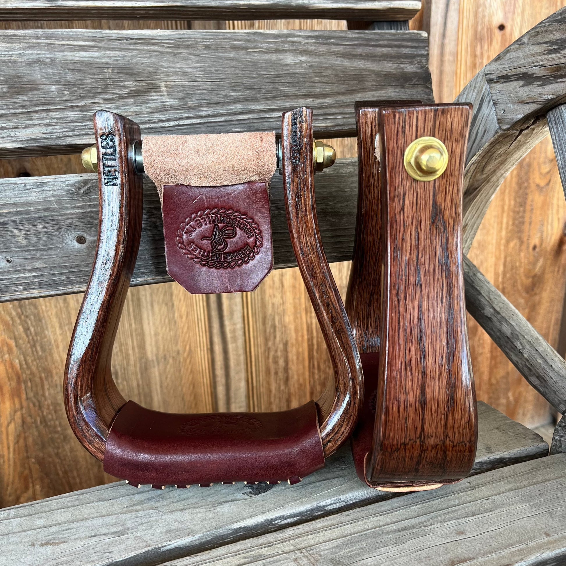 Nettles 2" Flat bottom Cherry Stirrups are made from top-grade leather and finest wood, offering maximum durability and a comfortable grip. Their flat-face design helps keep your foot in place.