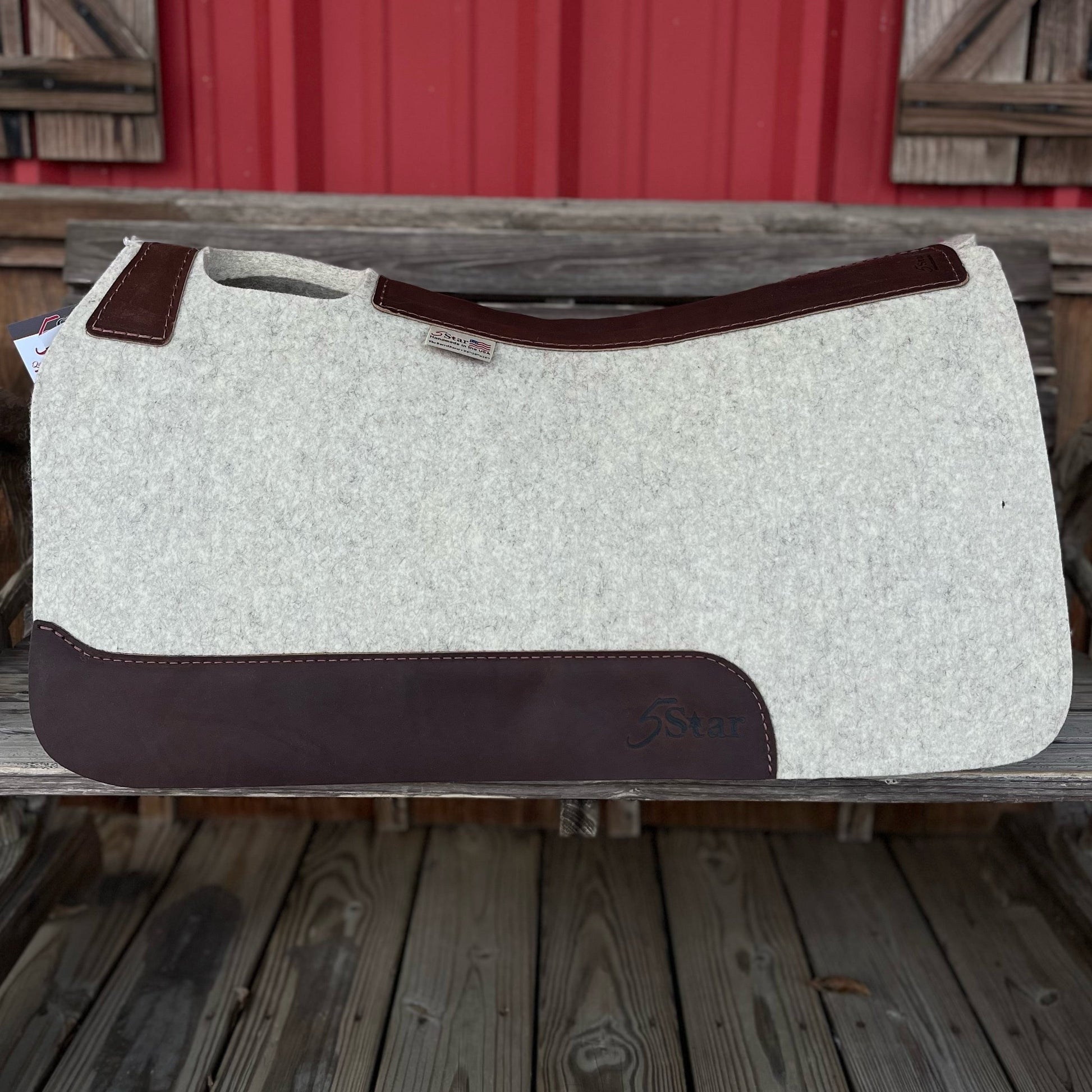 5 Star Pad 7/8" Thick western contoured natural barrel pad 30x28 with regular brown wear leathers.