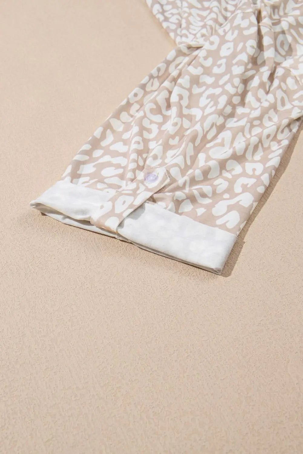 Embrace your style with the Apricot Leopard Tab Sleeve V Neck Plus Size Top from Love Salve. This blouse is designed to celebrate curves while delivering chic, all-day comfort.