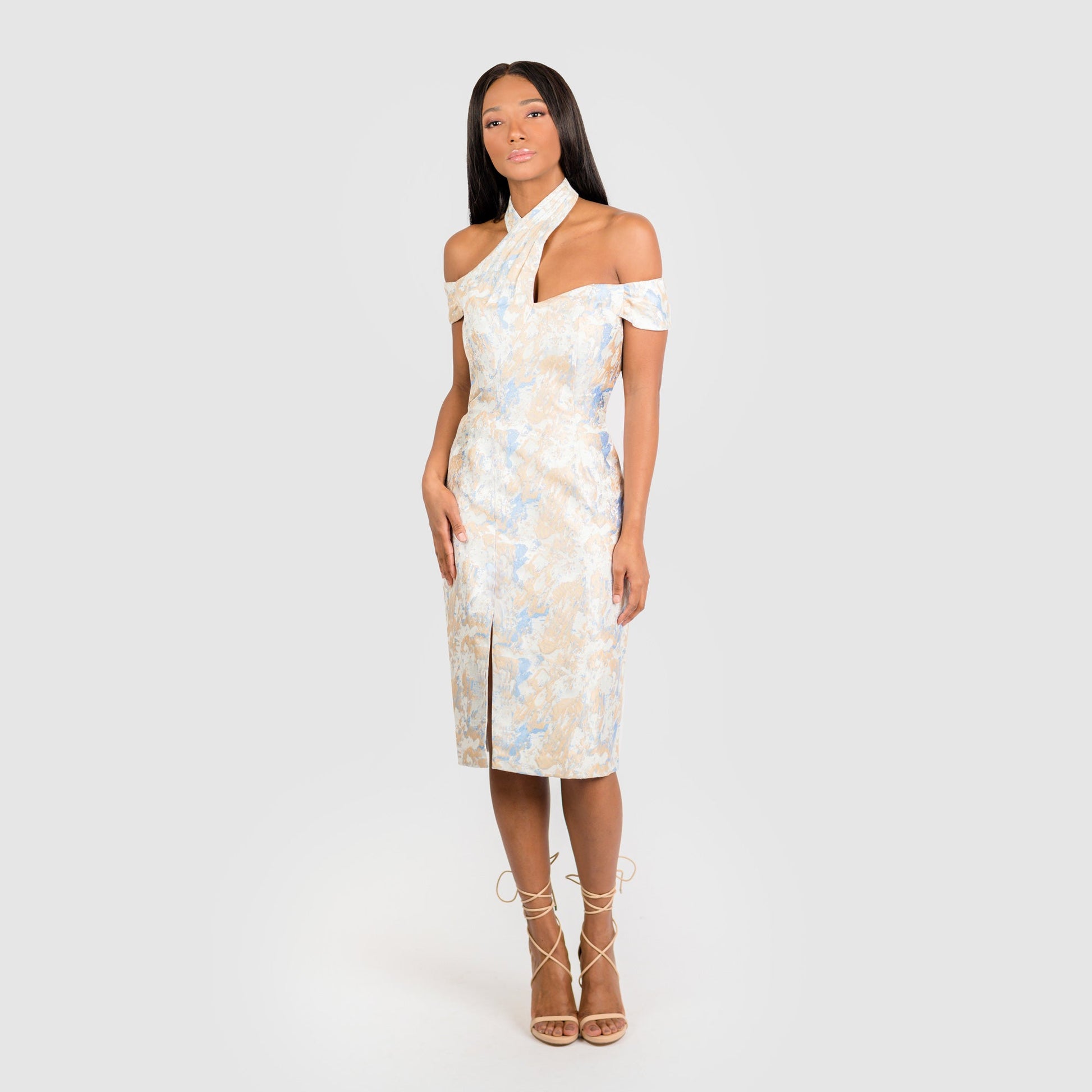 Asymmetric Halter Off The Shoulder Sheath