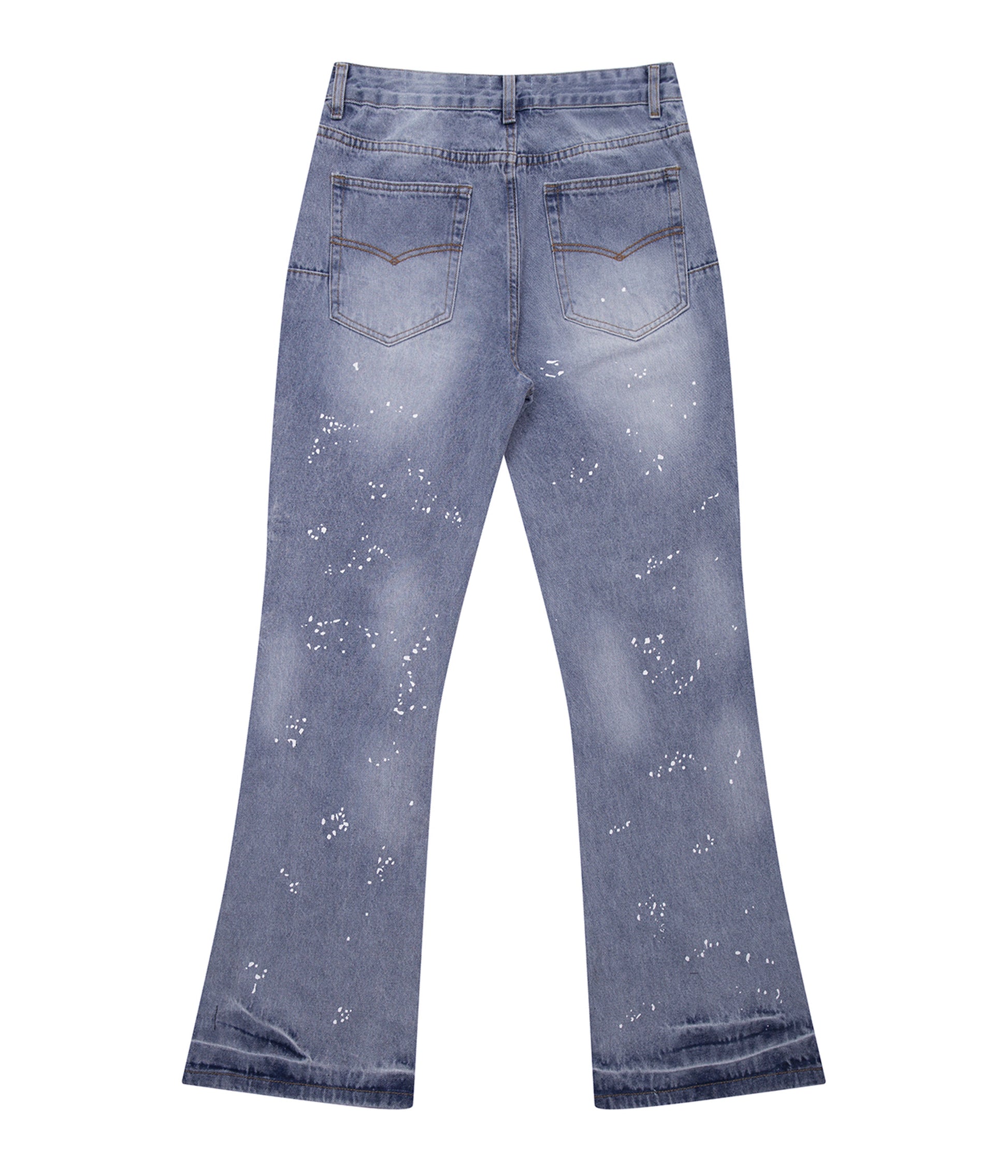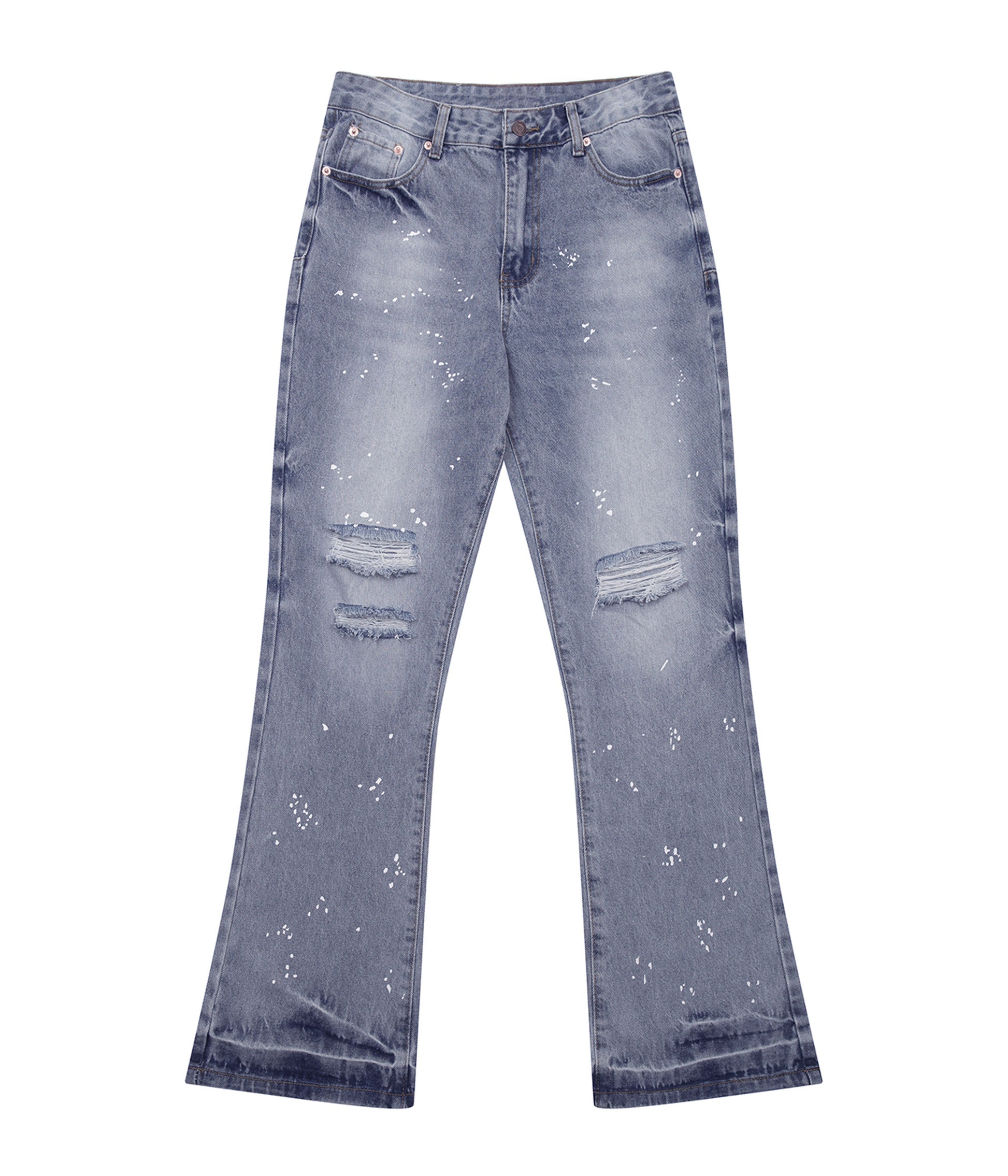Our Azul Split Flare Denim is designed with a flared fit, featuring distressed detailing and a light wash.