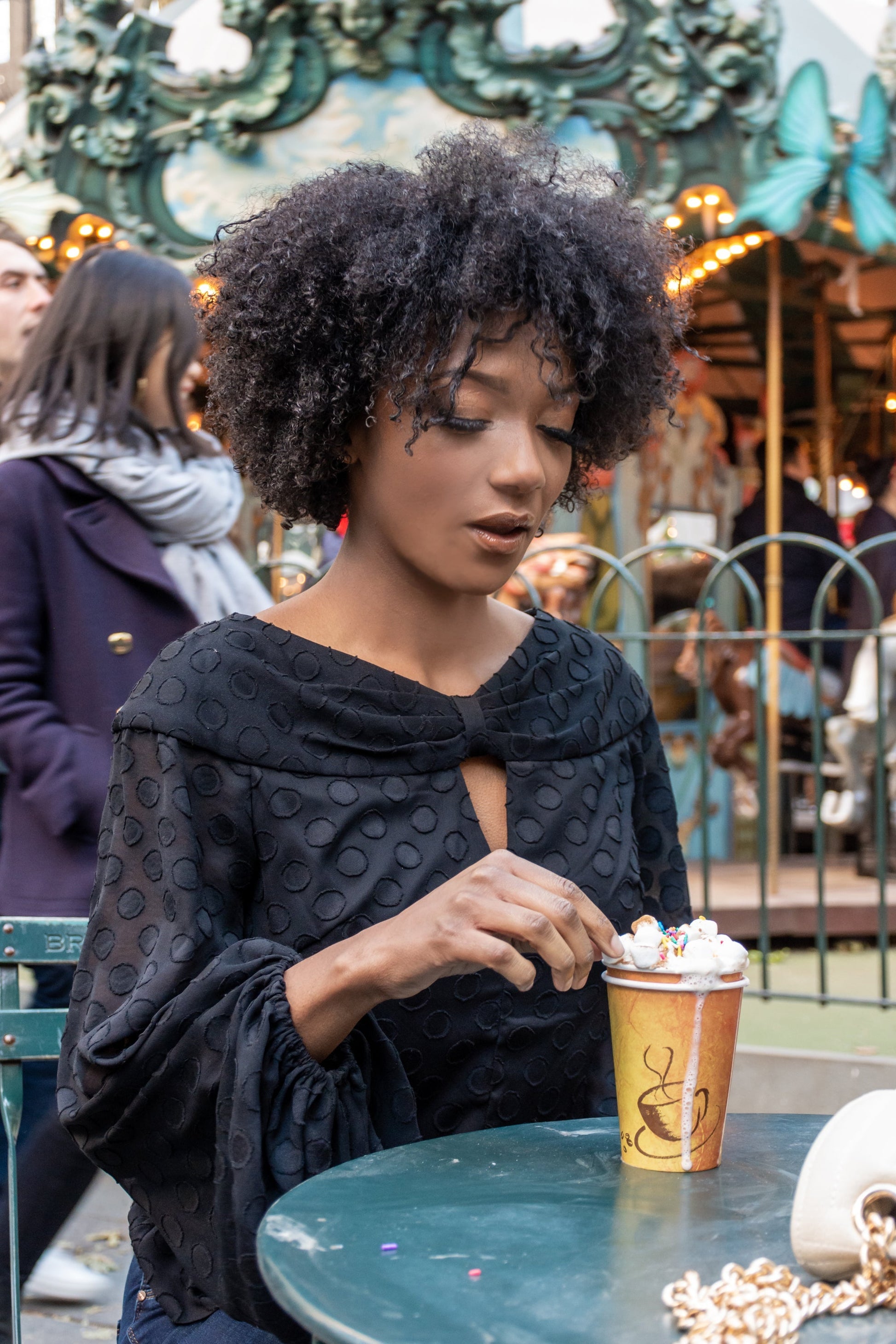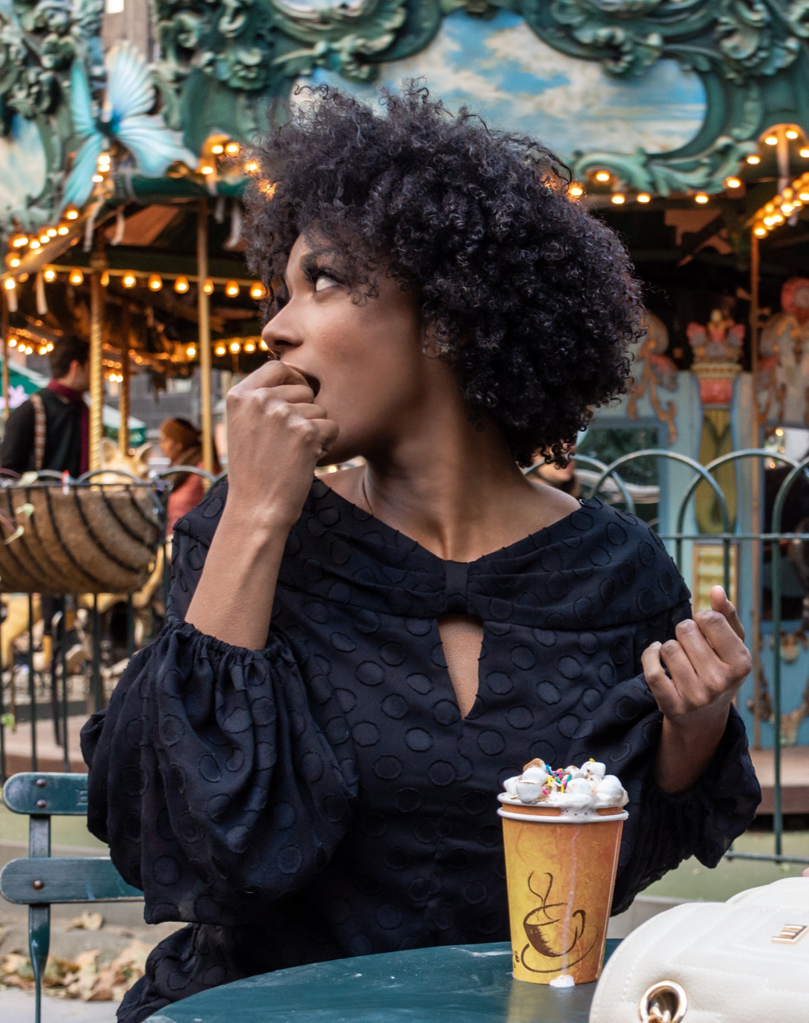 Balloon Sleeve Keyhole Neckline Blouse