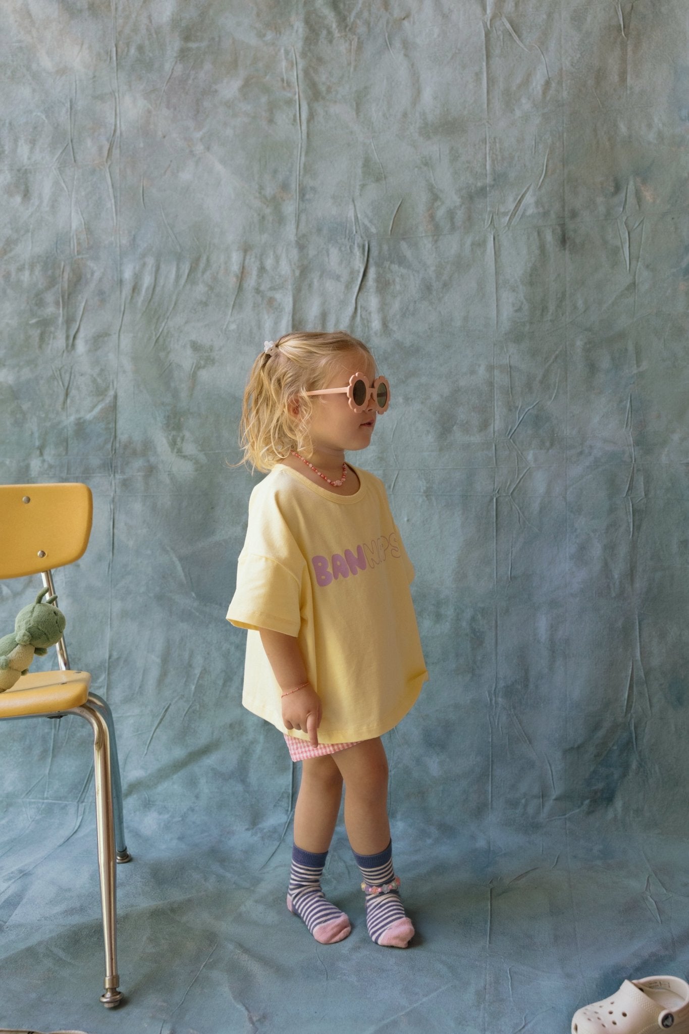 This unisex T-Shirt for Toddlers in soft yellow features a bold purple “BAN NAPS” graphic on the front — perfect for cool kids with strong opinions and zero nap agendas. It’s playful, comfortable, and made for everyday wear.