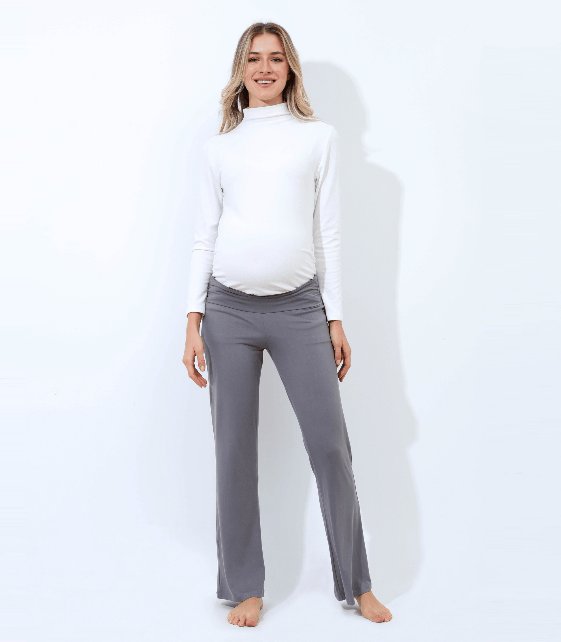 A third trimester lifesaver that can also be worn pre-pregnancy or postpartum! When your bump is so big that even the most stretchy material cannot make you feel comfortable, you turn to these pants for help! The top of the pants smartly sits below your bump, never restraining your belly. A must-have item for your hospital bag.