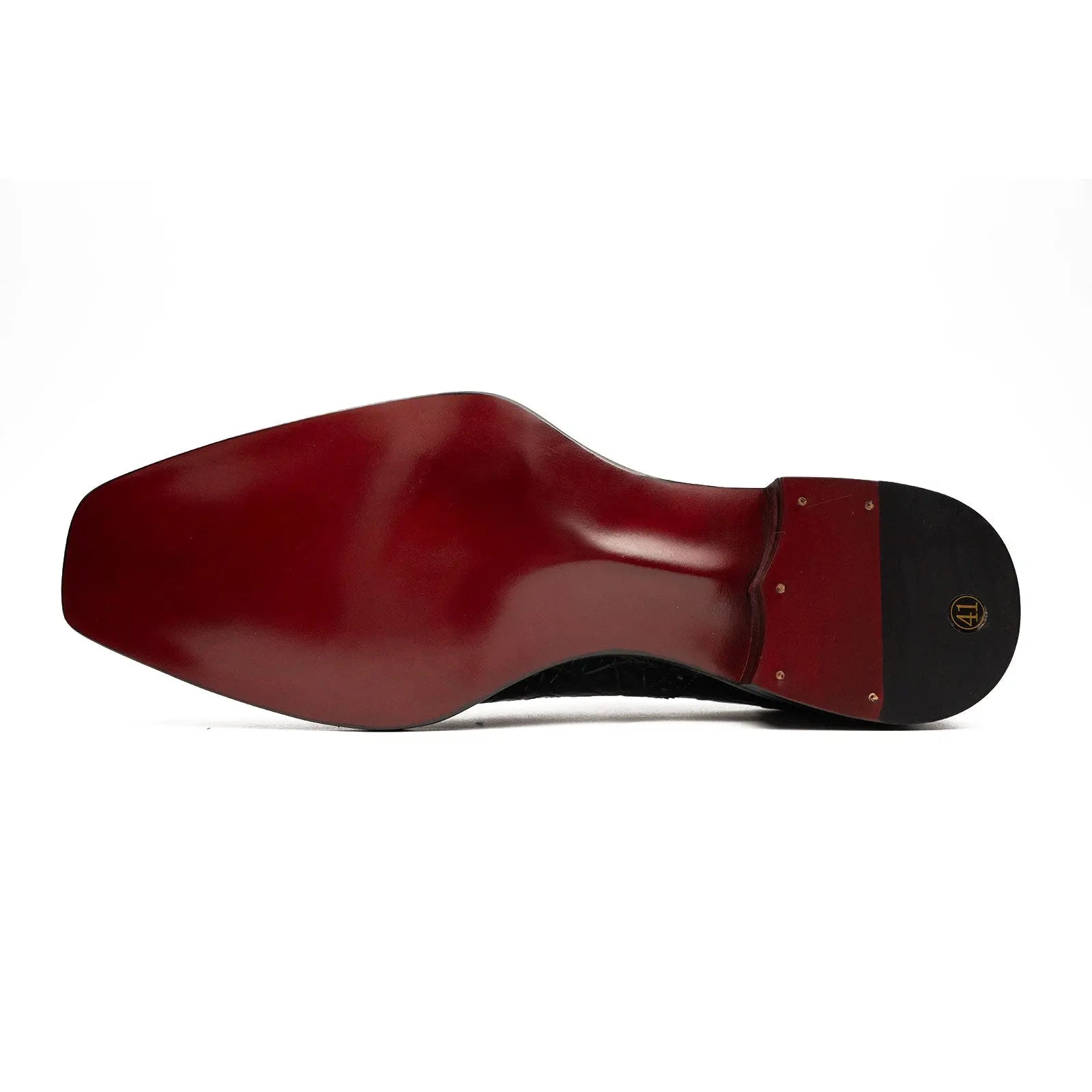Luxury Red Leather Sole – Polished, durable sole with anti-slip support and a bold aesthetic edge.