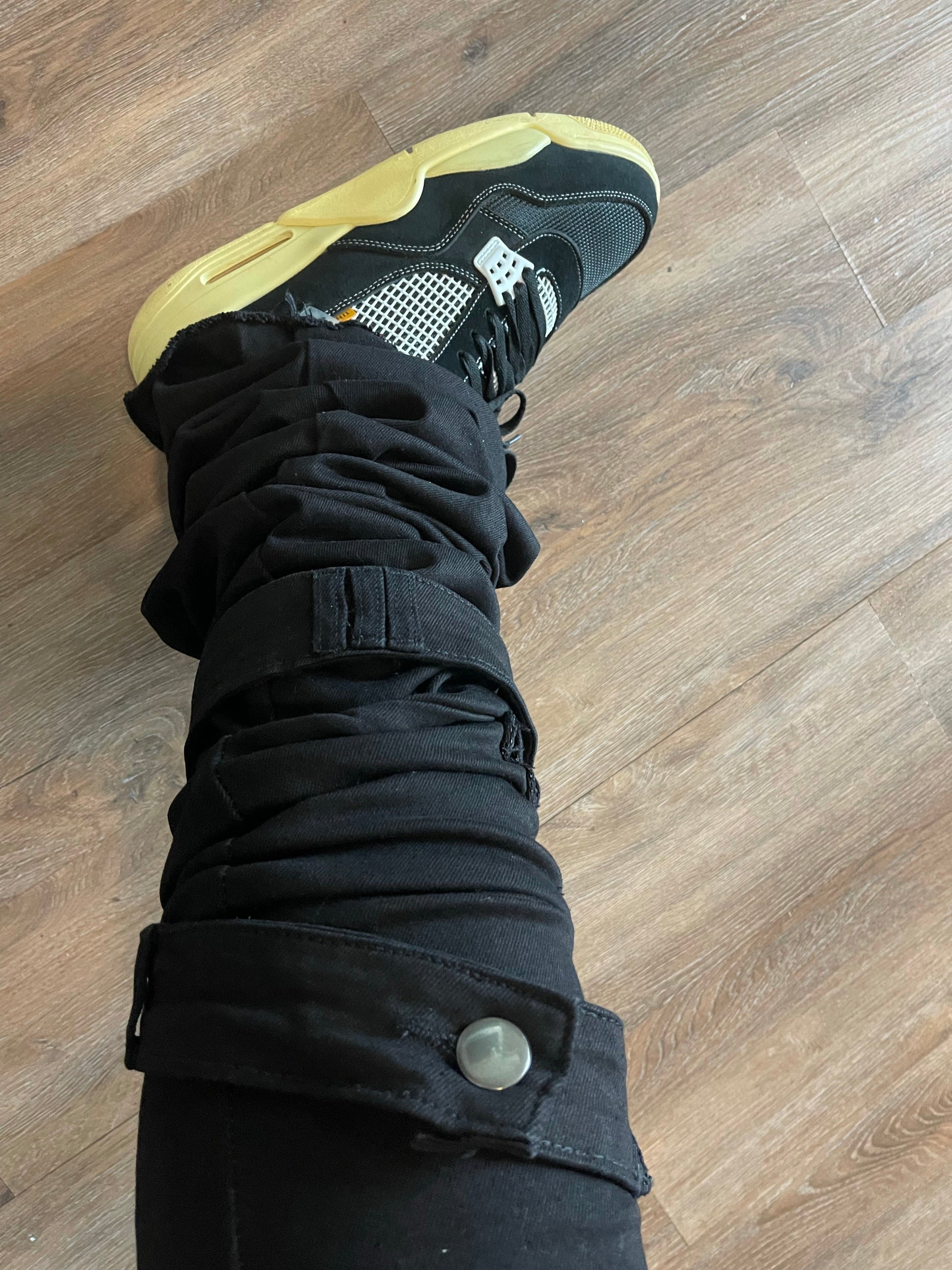 Black Stacked Denims w/ Shin Belt