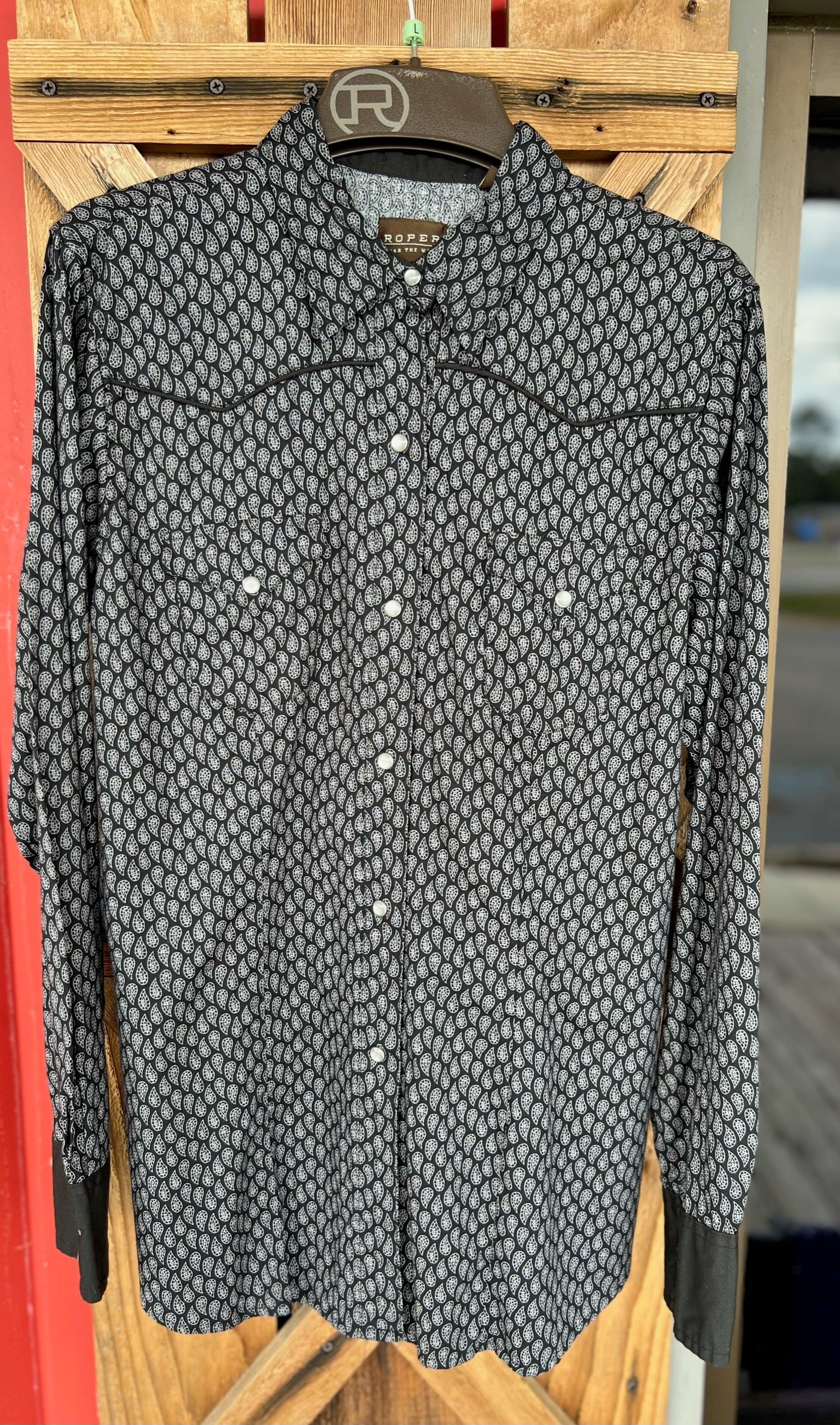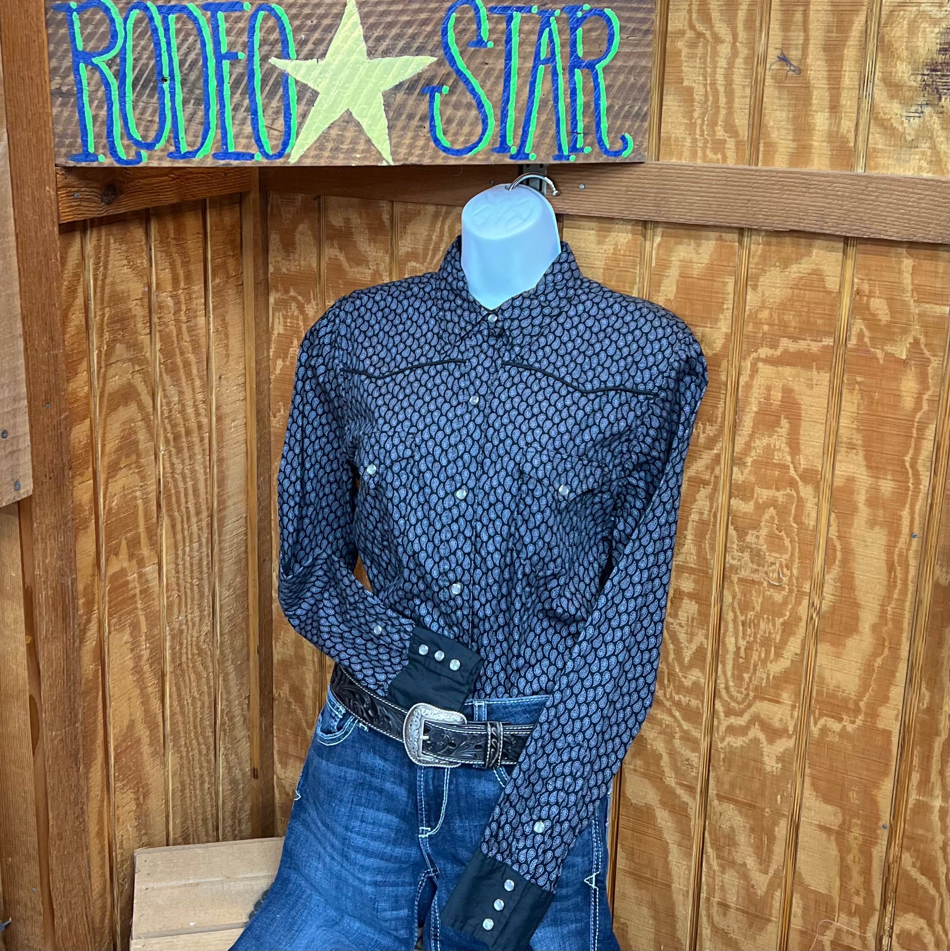 Women's Roper black and grey tear drop designs long sleeve button up with snaps