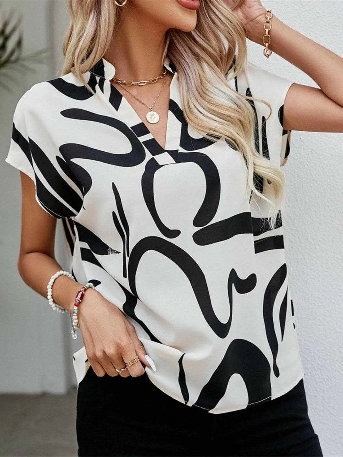 Discover the epitome of effortless elegance with the Trendsi Chic Printed Notched Sleeve Blouse. This premium quality top is designed to infuse your wardrobe with a touch of sophisticated charm, perfect for both professional settings and stylish casual outings. Crafted from a luxurious, lightweight fabric blend, it offers exceptional comfort and a flattering drape that moves beautifully with you.