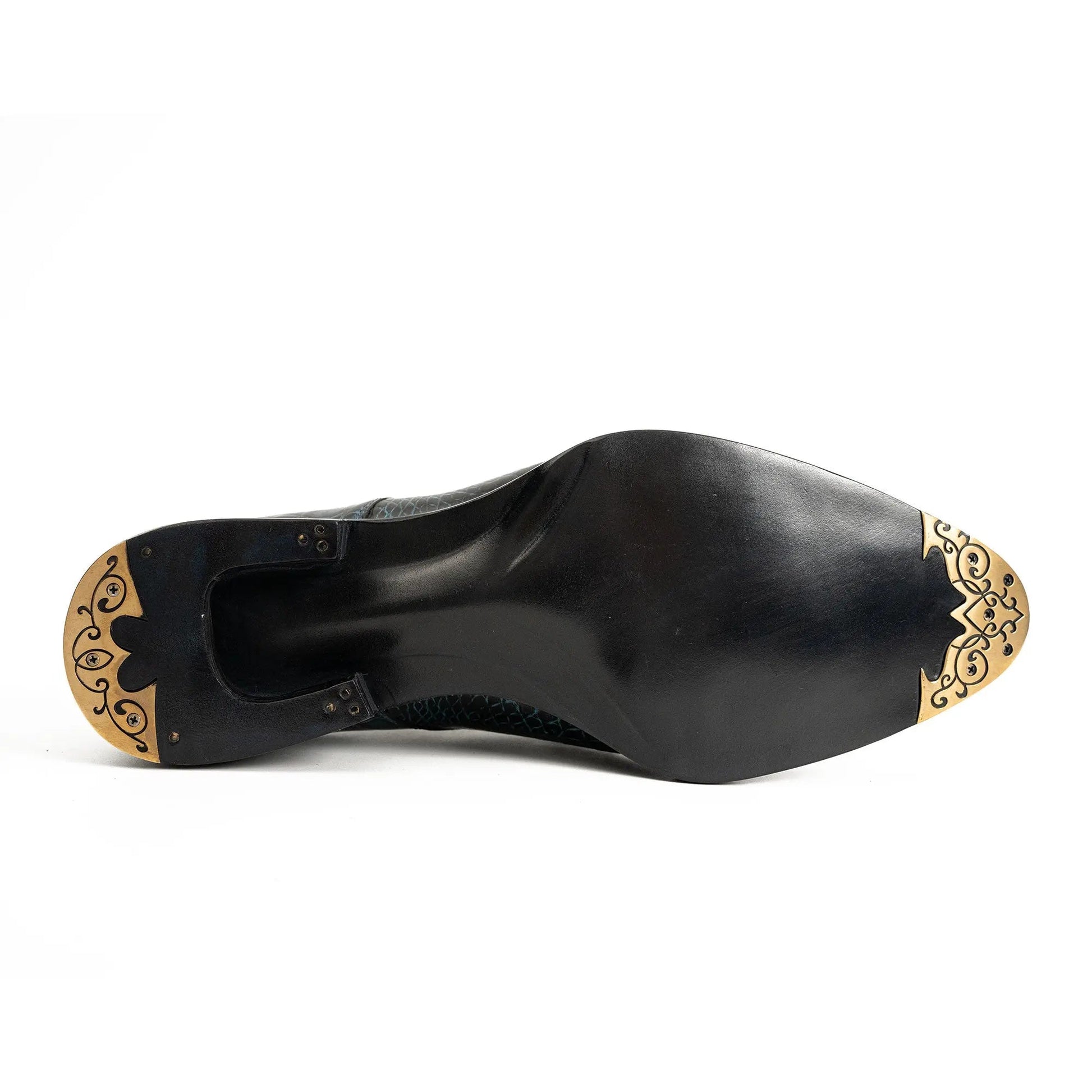 Upper: Genuine Nile crocodile leather with hand-applied blue gradient patina