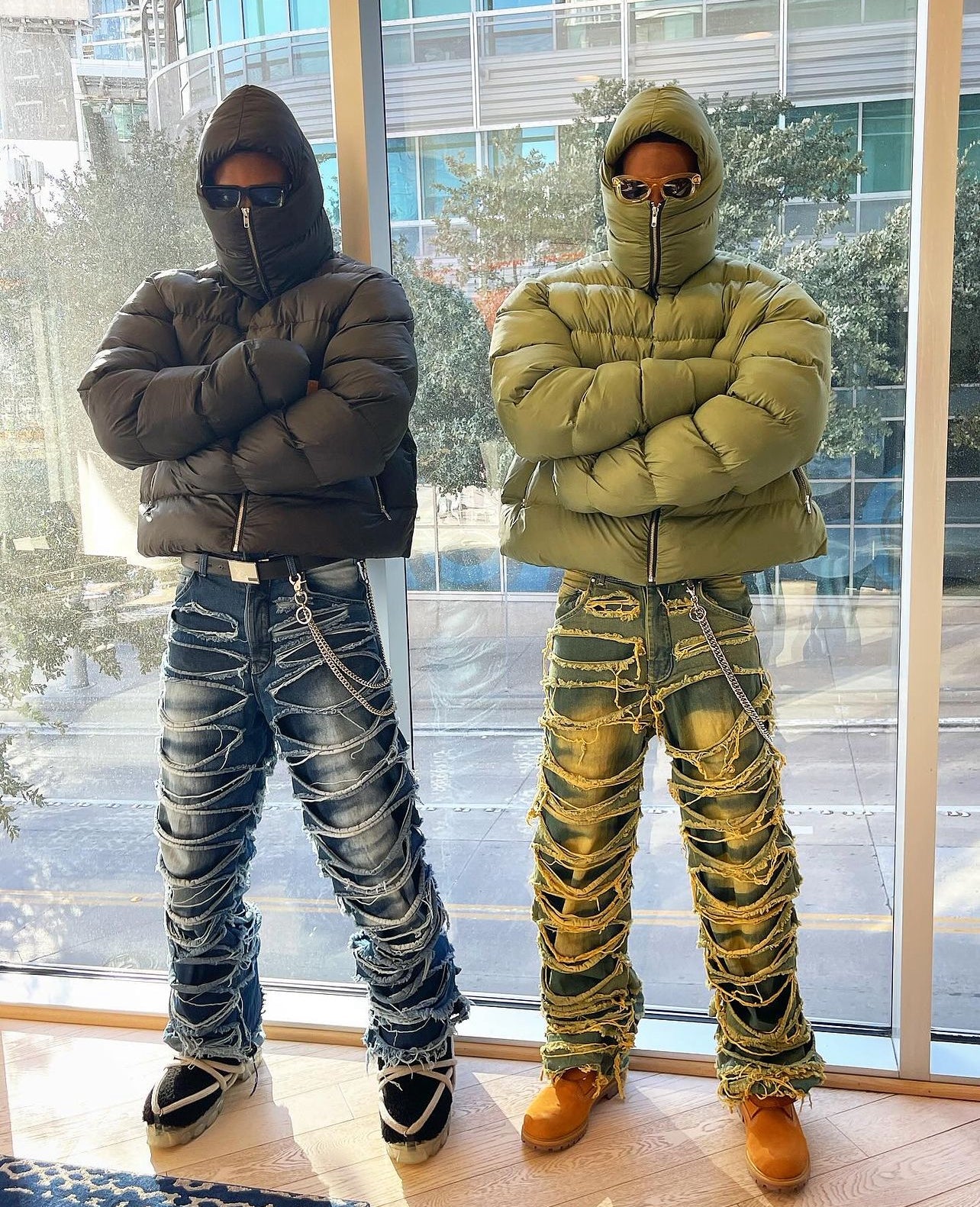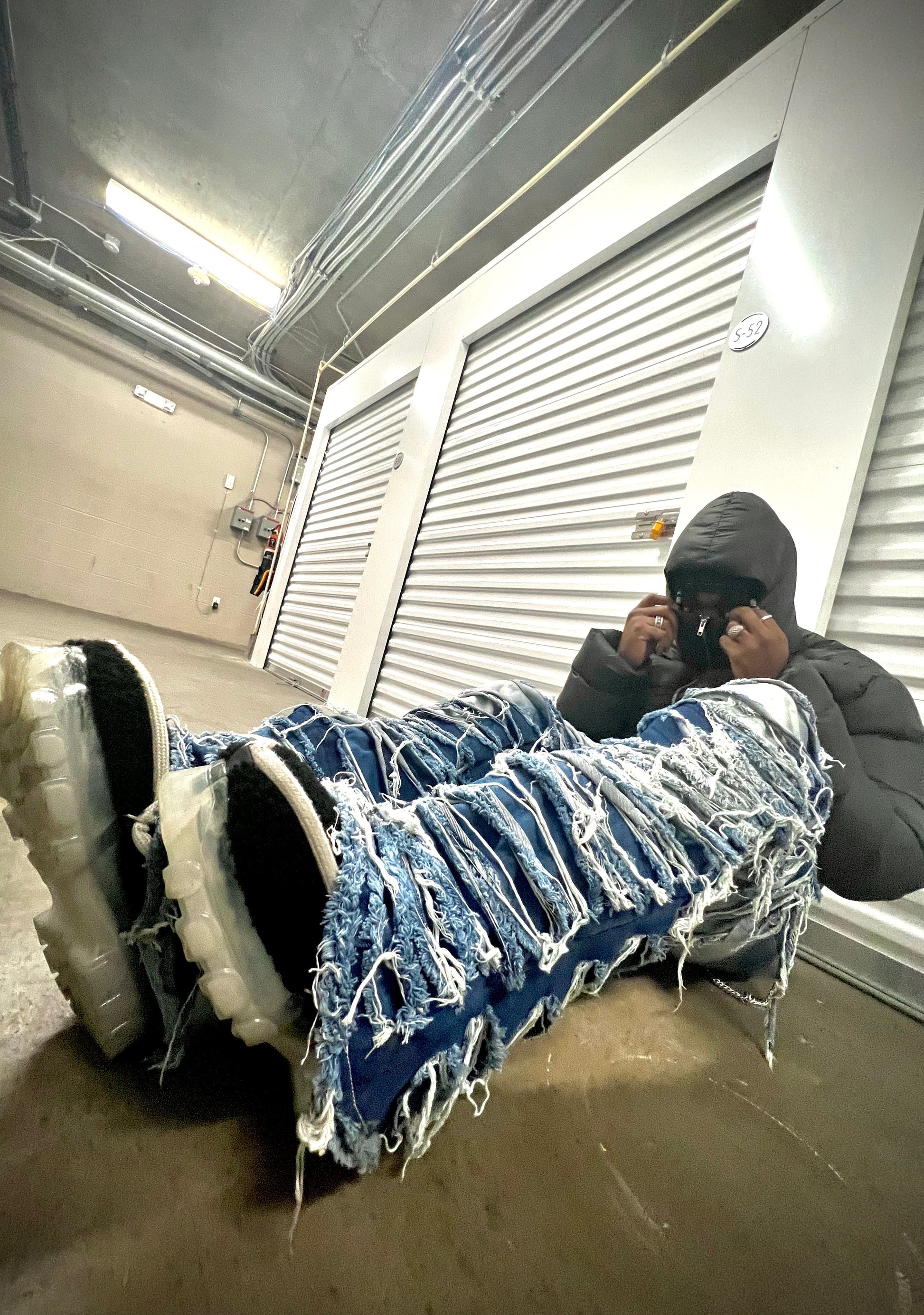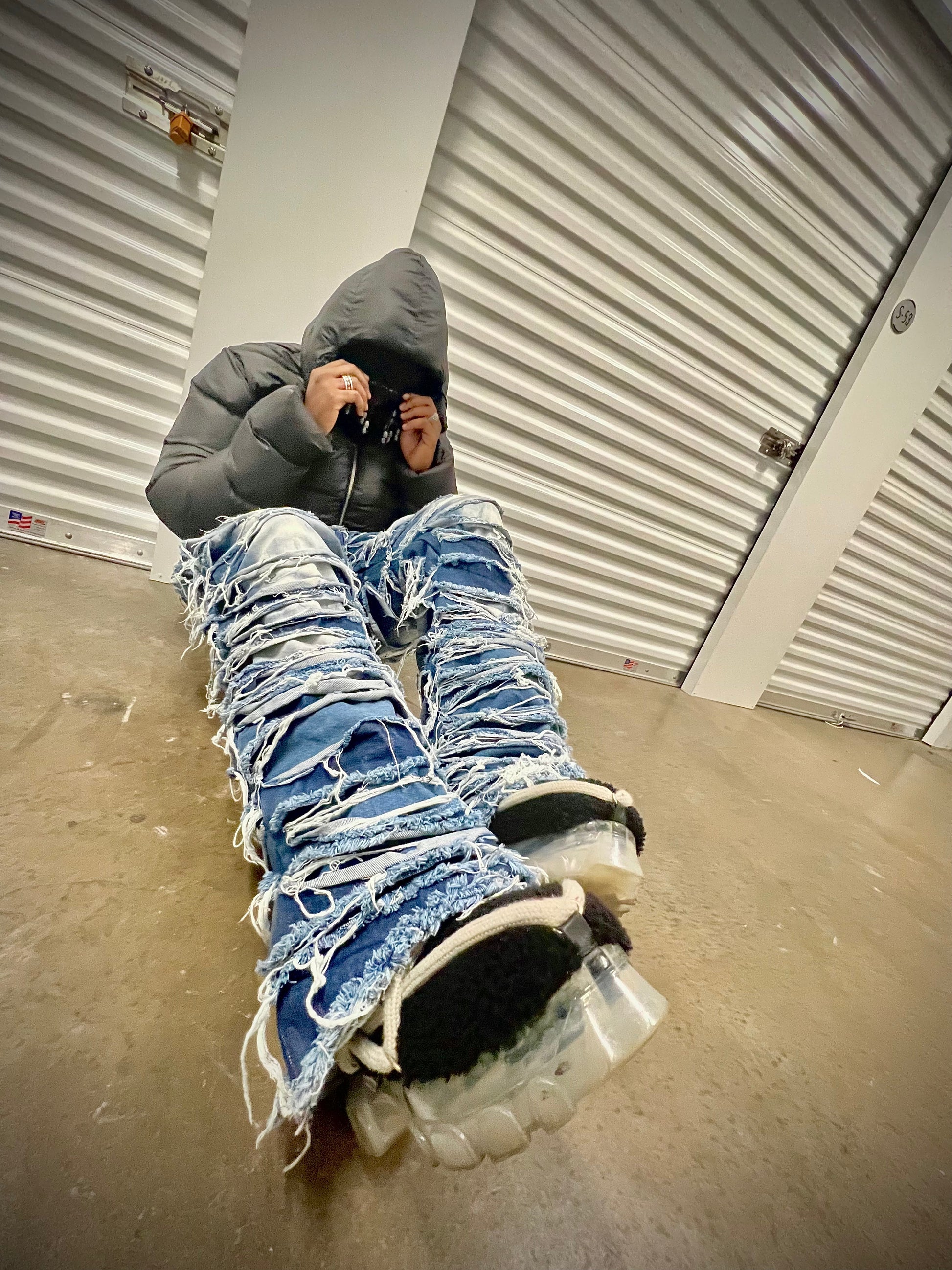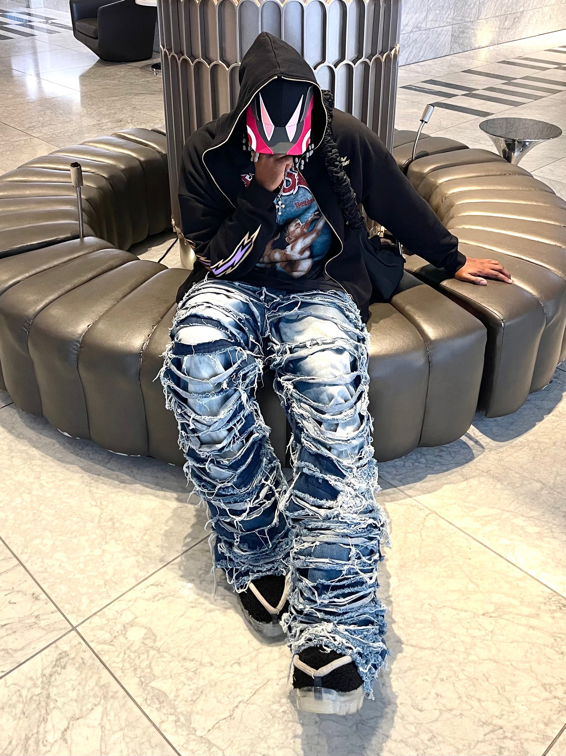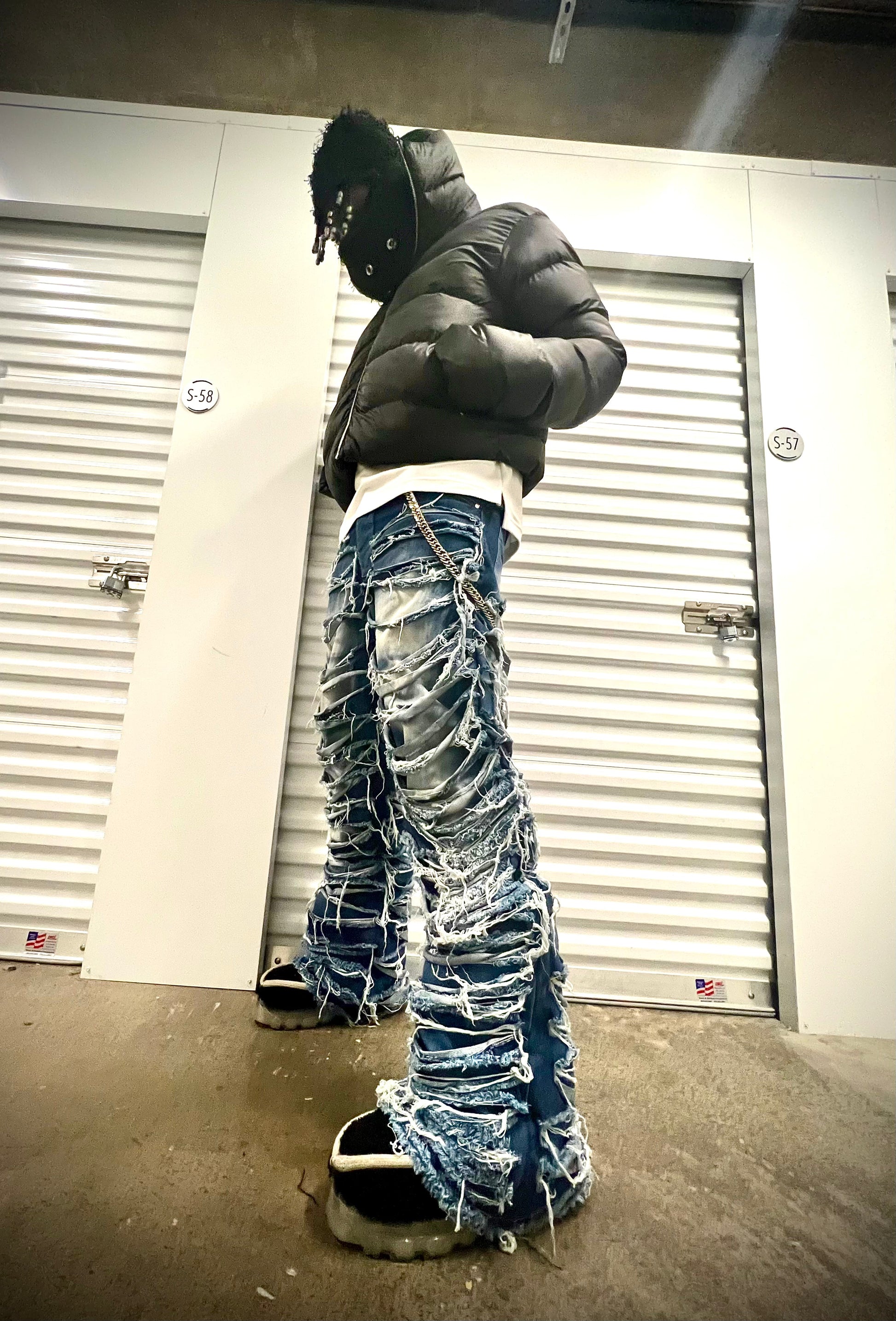 BLUE & WHITE DOUBLE LAYERED BAGGY DESTROYER DENIM